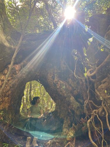 屋久島 森 ボイスヒーリング リトリート 写真は、先日ボイスヒーリングリトリートでご案内したお客様と ご一緒した森で。 なかなかの雨に降られながらの森歩きでしたが 切株の中でのボイスヒーリングが終わってふと見上げれば 神秘的・幻想的な美しさに、し…